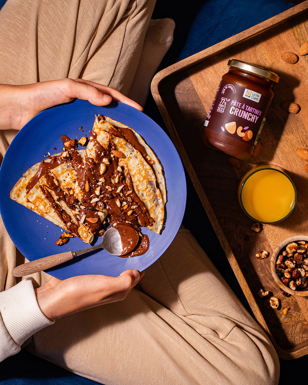 Chaque visuel est construit autour d’un plat central, pensé comme un “soleil”, irradiant la scène de couleurs, de textures et de générosité.