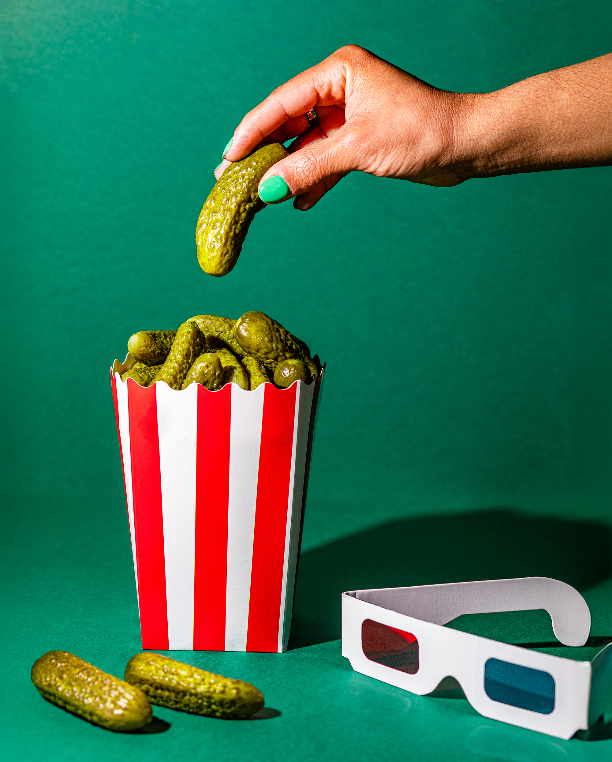 Pour Bravo Hugo, nous poursuivons leur signature créative : détourner le cornichon en l’intégrant dans des univers inattendus. Avec Pop Cornichon, il devient un snack de cinéma, présenté dans un contenant iconique et dégusté comme du popcorn. Avec DJ Pickle, une simple rondelle remplace un vinyle miniature, transformant le produit en objet graphique et ludique.